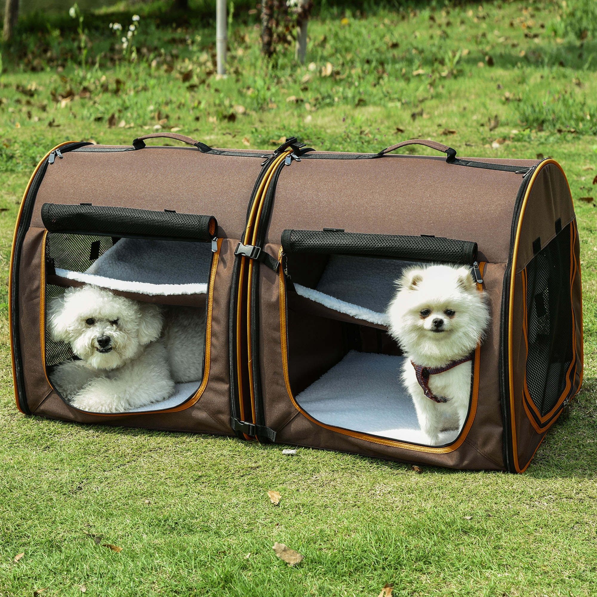 39" Portable Soft-Sided Pet Cat Carrier With Divider, Dual Compartment, Soft Cushions, & Storage Bag - Brown 39" Portable Soft-Sided Pet Cat Carrier With Divider, Dual Compartment, Soft Cushions, & Storage Bag - Brown 39" Portable Soft-Sided Pet Cat Carrier With Divider, Dual Compartment, Soft Cushions, & Storage Bag - Brown