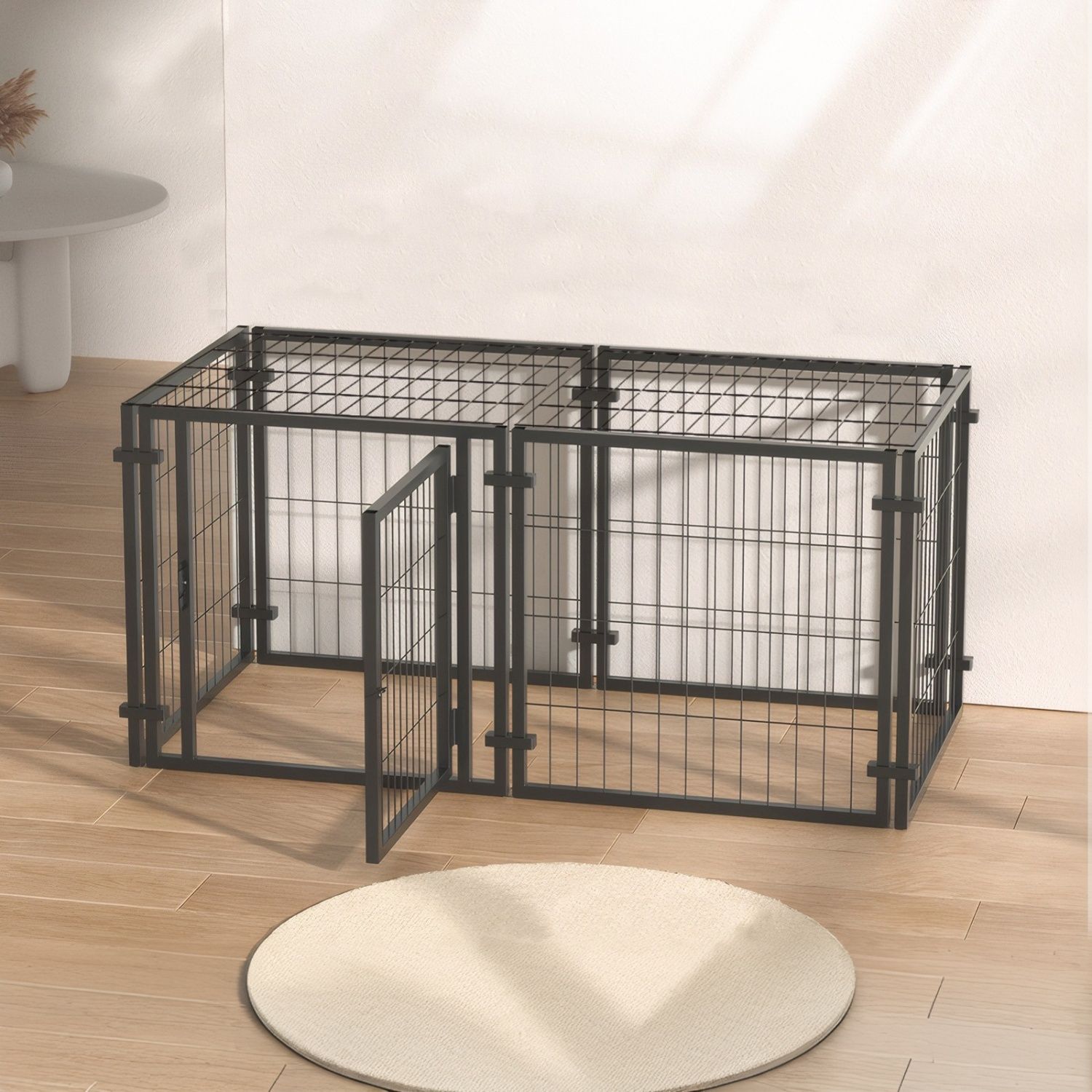 Easy Assembly: This dog crate is designed for quick and hassle-free setup, making it ideal for busy pet owners who need an efficient solution for their pet's safety.
