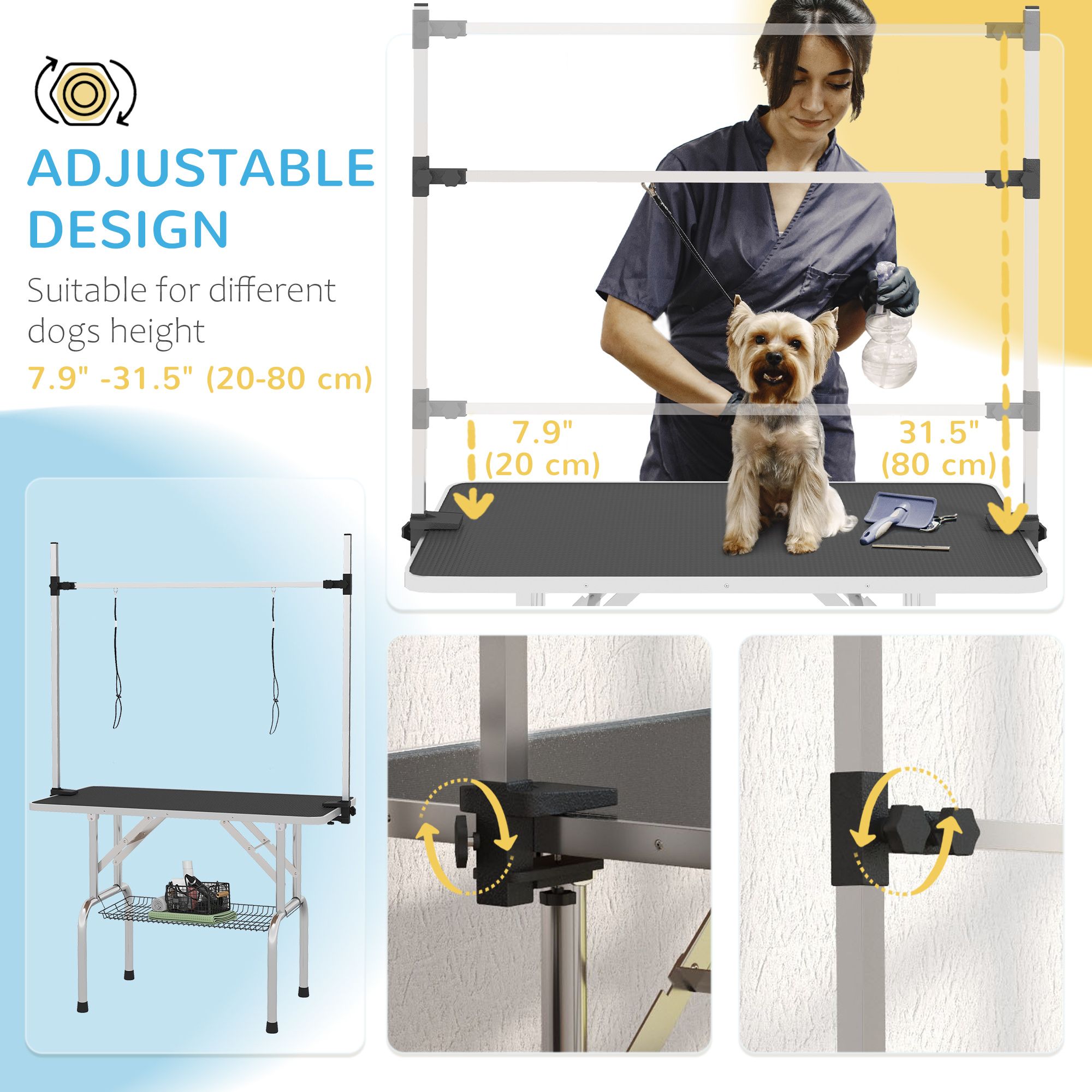 Adjustable Dog Grooming Table with 2 Safety Slings, Storage Basket, Black Adjustable Dog Grooming Table with 2 Safety Slings, Storage Basket, Black Adjustable Dog Grooming Table with 2 Safety Slings, Storage Basket, Black